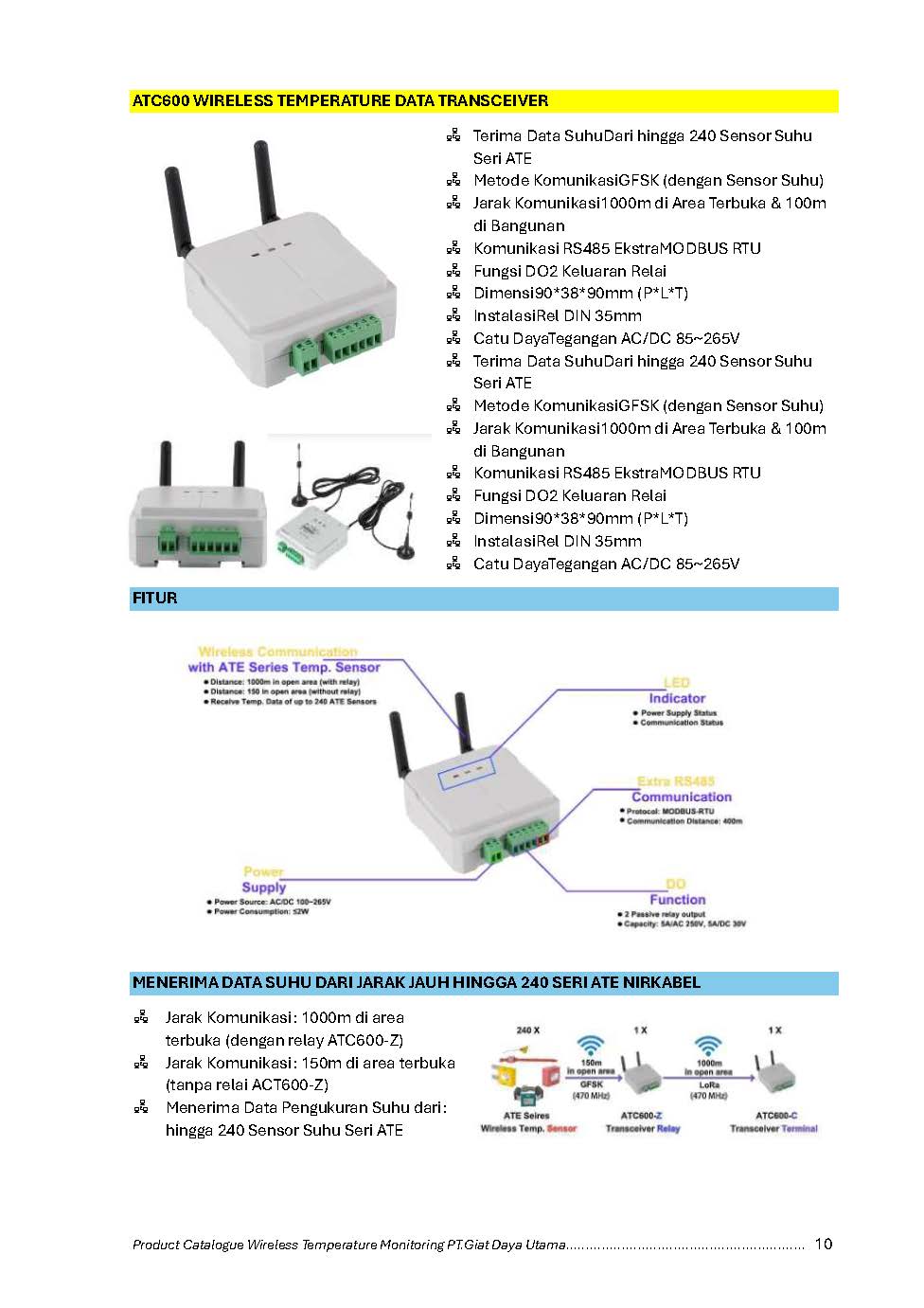 - Terima Data Suhu dari hingga 240 Sensor Suhu Seri ATE