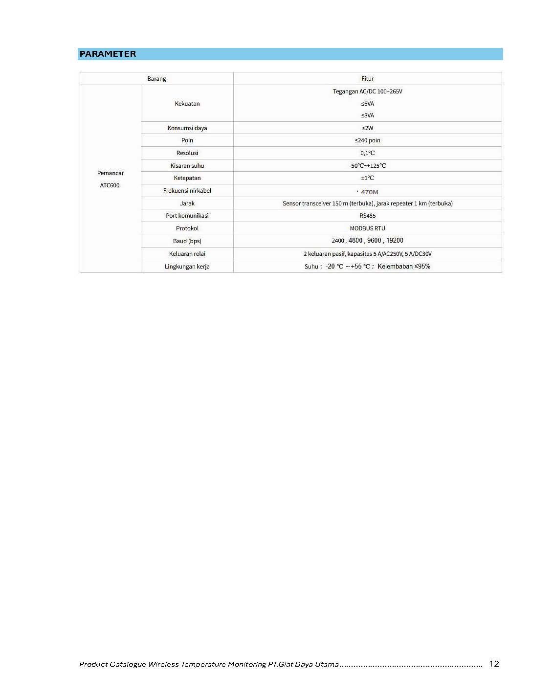 - Metode Komunikasi: GFSK (dengan Sensor Suhu)