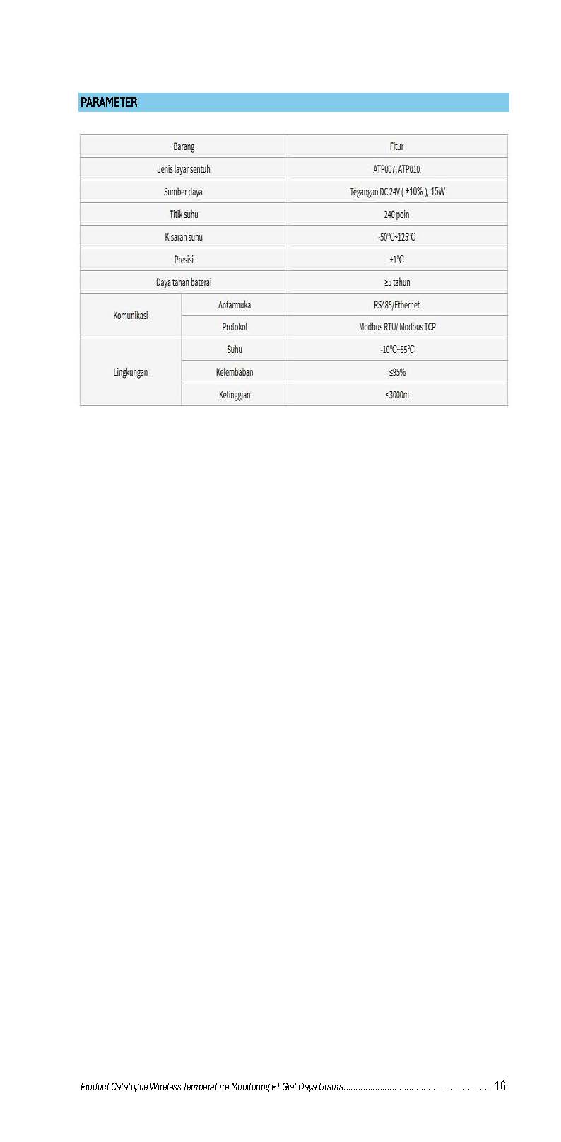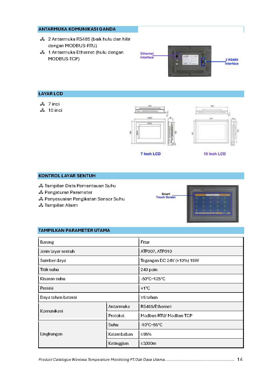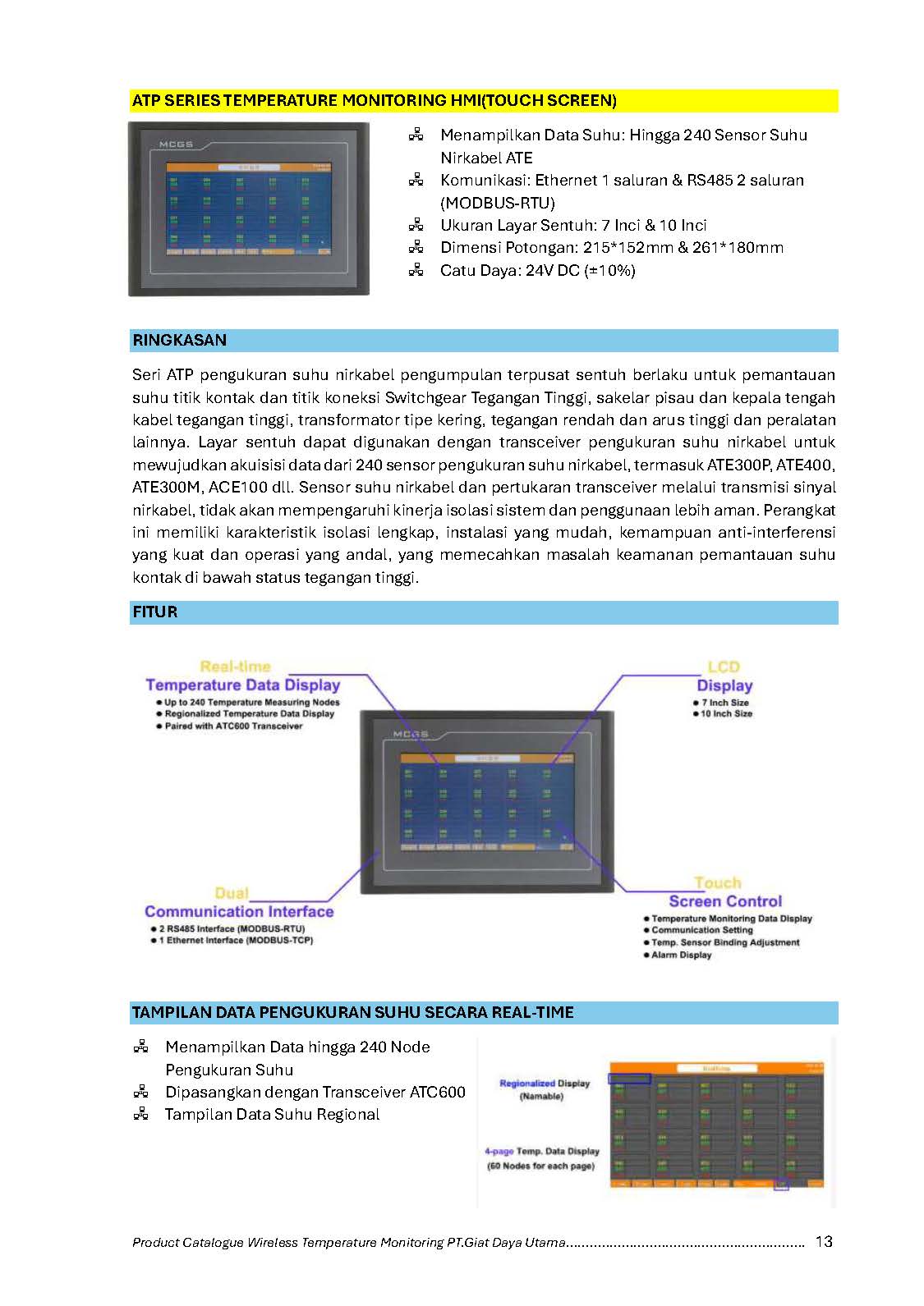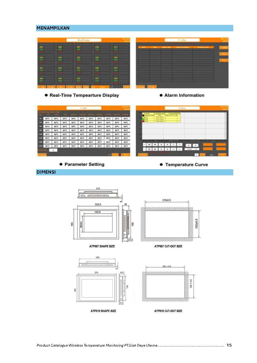 - Menampilkan Data Suhu: Hingga 240 Sensor Suhu Nirkabel ATE